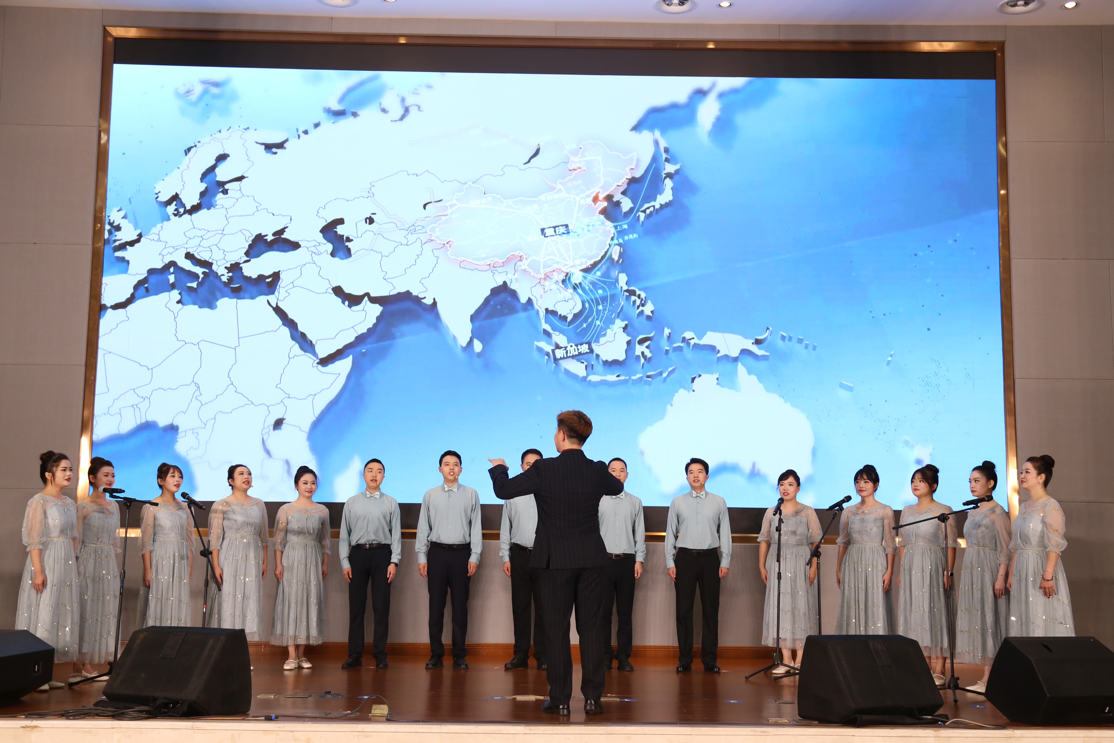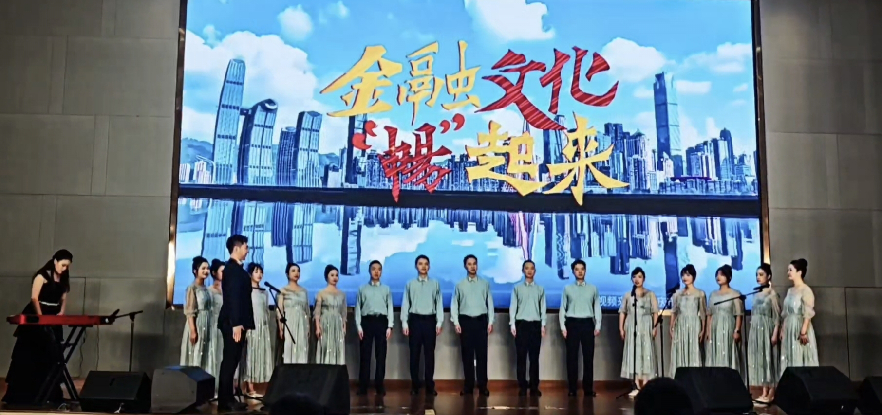 比赛现场,我办参赛队伍身着统一服装,精神抖擞、朝气蓬勃、意气风发。伴随着悠扬的旋律,队员们以整齐洪亮的歌声、富有感染力的演绎,将歌曲中的情感与力量充分展现,赢得了现场评委和观众的阵阵掌声,展现了金融干部队伍团结奋进、昂扬向上的风采,更增强了全办的凝聚力与向心力,进一步激发了全体干部职工爱岗敬业、担当作为的干事热情。